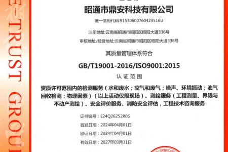 2003年11月10日,昭通市鼎安科技有限公司成立,初始主要從事第三方安全工程技術(shù)服務(wù),經(jīng)多年運(yùn)營(yíng),發(fā)展為多專業(yè)綜合科技平臺(tái),為社會(huì)提供多種專業(yè)技術(shù)服務(wù)工作。 現(xiàn)公司注冊(cè)資金為1200萬元,公司法定代表人:毛衛(wèi)旭。公司主要業(yè)務(wù):安全評(píng)價(jià)、安全標(biāo)準(zhǔn)化評(píng)審、安全工程技術(shù)服務(wù);環(huán)境監(jiān)測(cè)、職業(yè)衛(wèi)生檢測(cè)、檢驗(yàn);法律訴訟及非訴訟服務(wù);司法鑒定、固定資產(chǎn)投資項(xiàng)目節(jié)能服務(wù);工程咨詢;工程測(cè)量測(cè)繪;安全教育培訓(xùn)等。是安全生產(chǎn)服務(wù)、安全教育培訓(xùn)機(jī)構(gòu),也是環(huán)境監(jiān)測(cè)和職業(yè)衛(wèi)生服務(wù)機(jī)構(gòu),同時(shí)也是綜合的檢測(cè)檢驗(yàn)、綜合科技平臺(tái)服務(wù)機(jī)構(gòu)。多年來為公、檢、法、司、軍、警、海關(guān)、仲裁、安監(jiān)、工礦商貿(mào)企業(yè)、社會(huì)團(tuán)體及個(gè)人提供多專業(yè)技術(shù)服務(wù)。
